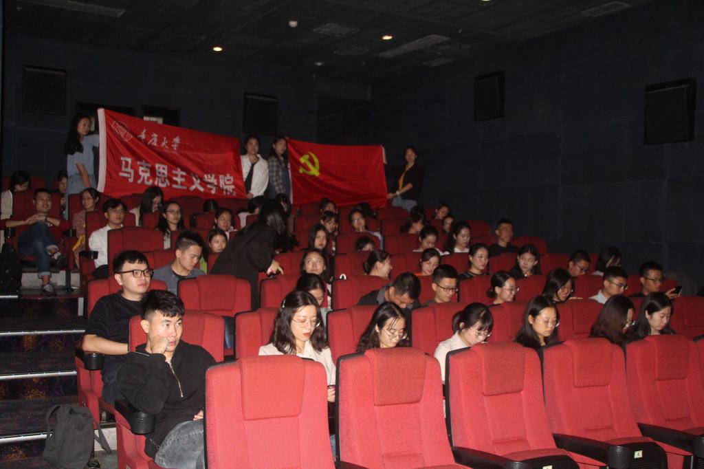 2019年10月9日晚,304am永利研究生二支部与建筑城规学院建筑学硕党支部联合开展“不忘初心、牢记使命”主题教育活动,赴沙坪坝电影院观看电影《我和我的祖国》。两个党支部的党员和入党积极分子共70余人参与了此次主题党日活动。